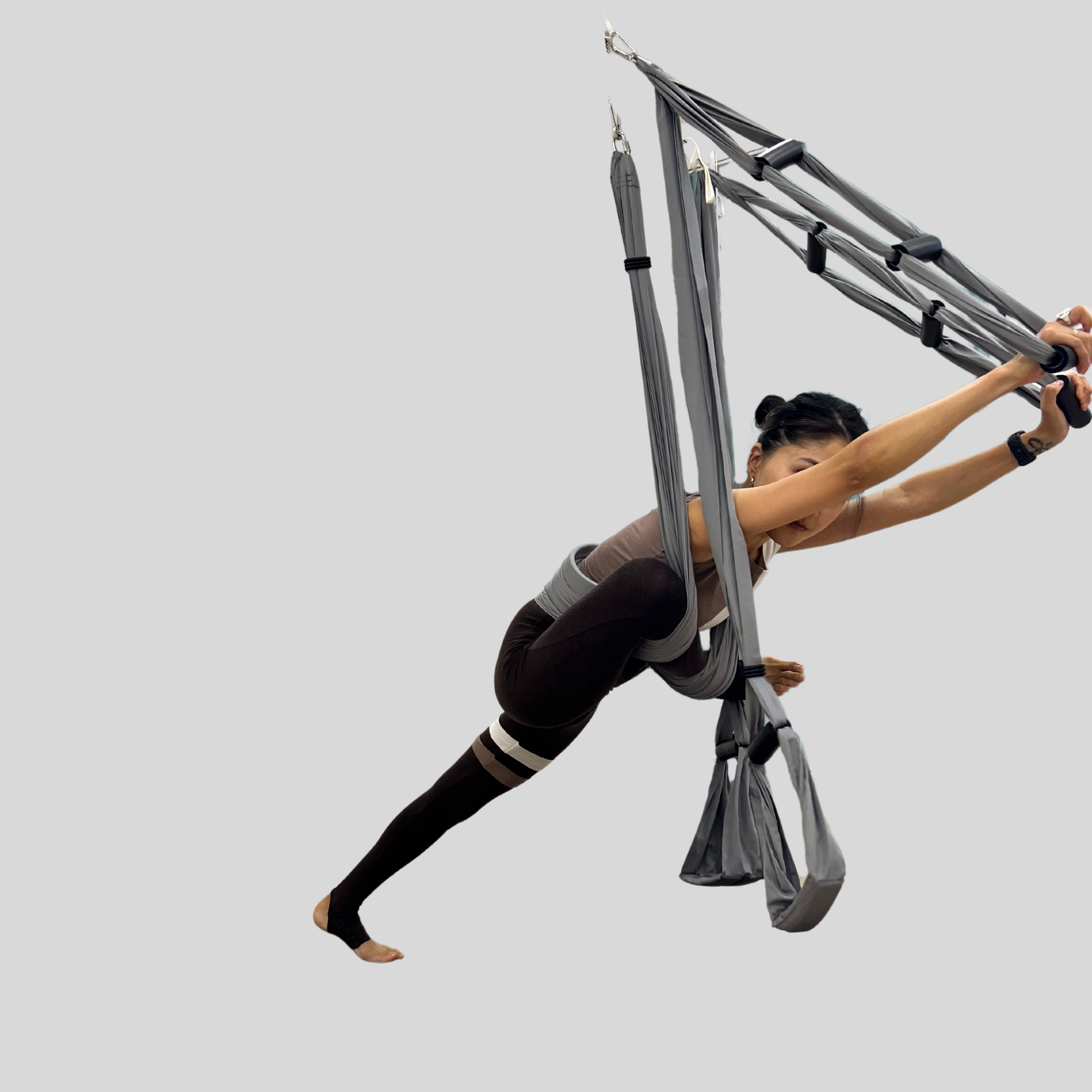 - колено и бедро (ноги в гамаке) на полу, а пятка направлена в потолок;