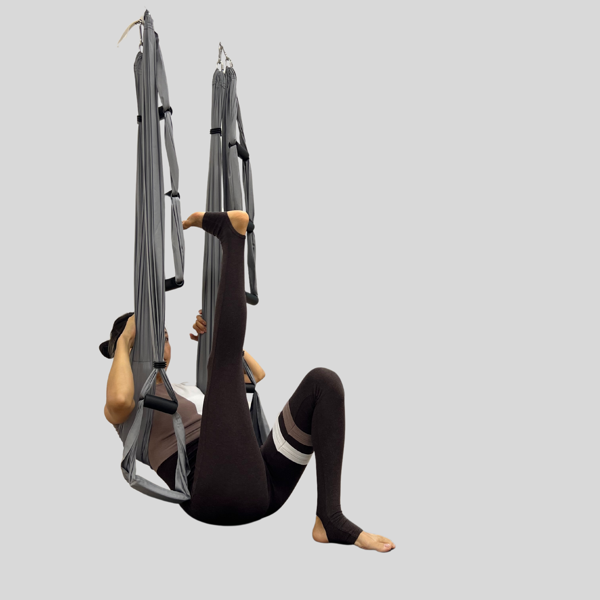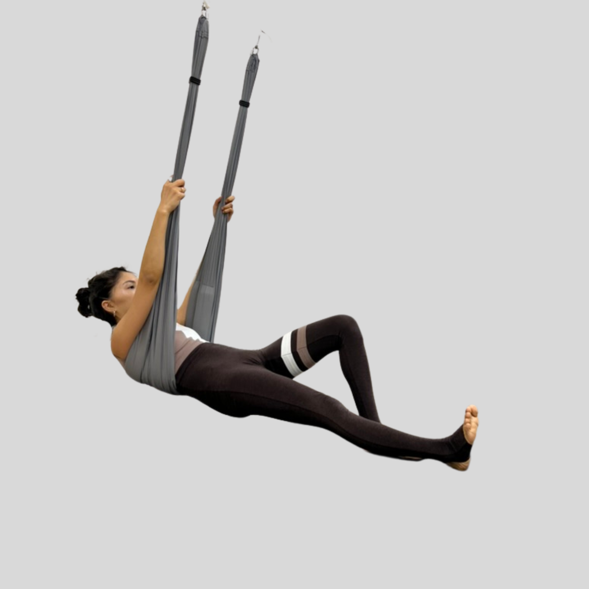 - вытянутая (правая) нога зафиксирована за стенку (с левой стороны) гамака;